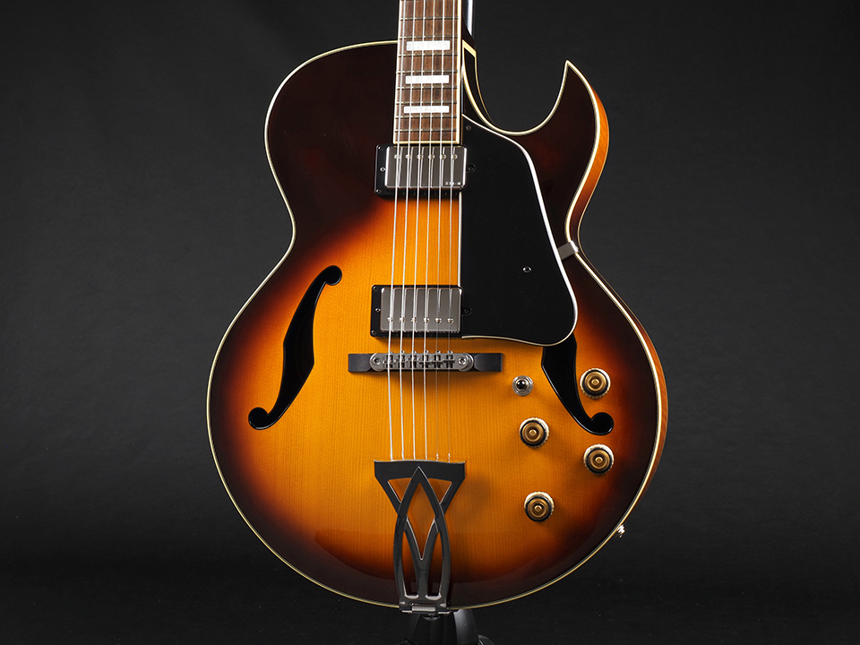 胴厚は約70mmと比較的薄めで取り回しが良く、演奏性に優れた一本。初心者から中上級者まで、幅広くおすすめできるフルアコモデルです。