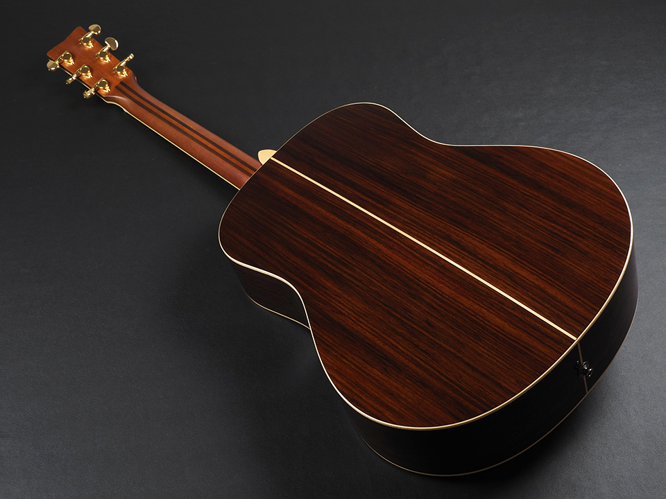 表板には北米産のイングルマンスプルース単板を採用しています。柔らかい木材であるイングルマンスプルースは低音から高音までの広い音域で豊かで伸びのある音が出せること、そして弾き手の演奏に俊敏に応える良好なレスポンスに特長があります。