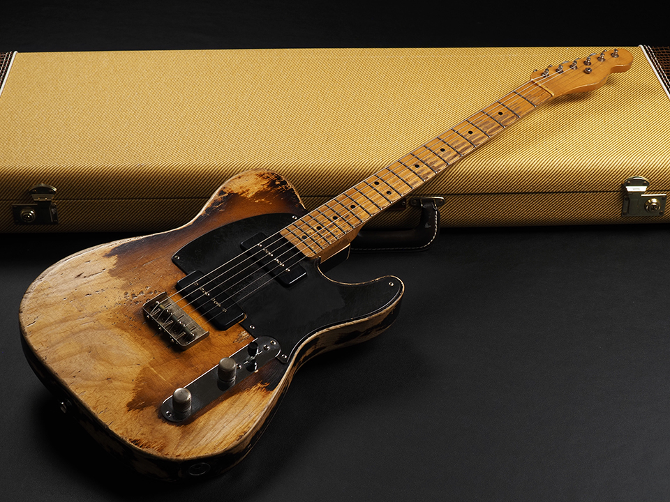 圧巻のSuper heavily aged SUNBURSTフィニッシュは、本当にこのギターが半世紀以上の年月を経てきたかのような圧倒的な仕上がり。ボディ、ネック全域においてのエッジの立て方、R部分の処理の仕方など、一部の隙も無く完璧にTelecasterのディティールを再現しています。