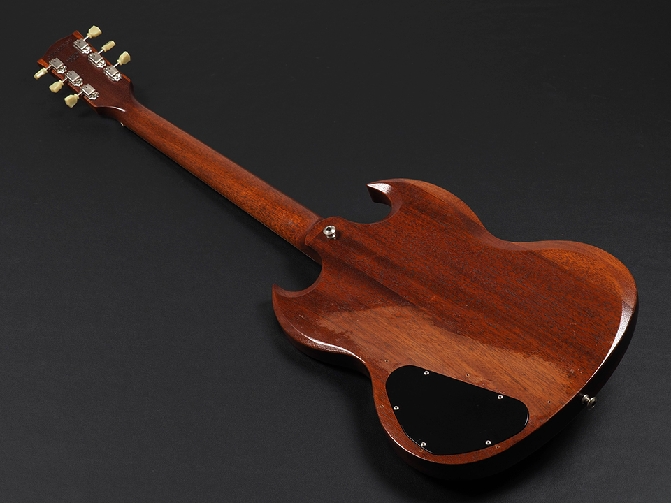 ボディには薄く仕上げられたマホガニー材を使用し、軽量で取り回しの良い設計。軽快さと粘りのあるサウンドを兼ね備えた、SGならではのキャラクターが魅力です。ダブルカッタウェイによる優れたハイポジションへのアクセスも健在です。