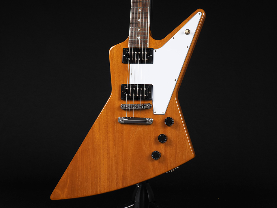 クラシカルな雰囲気を漂わせる“Antique Natural”カラーを、ニトロセルロース・ラッカーで仕上げることで、木材の質感を活かした味わい深いルックスに仕上げられています。エクスプローラーならではのシャープなシルエットと相まって、高い存在感を放つ1本です。