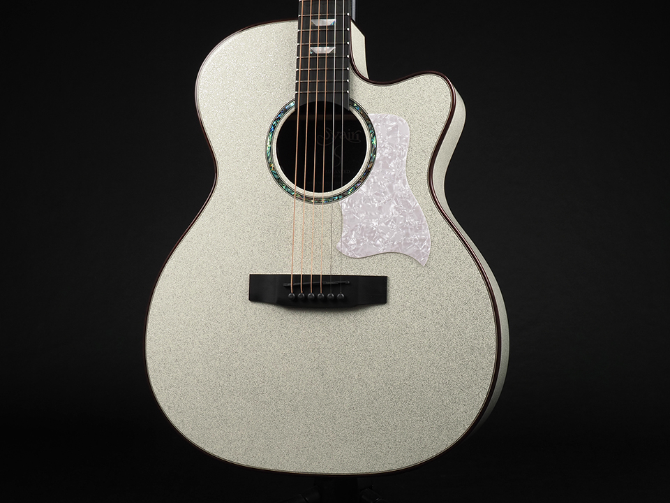 トップには単板スプルースを採用し、サイド&バックにはサペリ材を使用。見た目のインパクトだけでなく、明瞭で抜けの良いサウンドと、豊かな響きをしっかりと備えています。ストロークでは華やかに、フィンガースタイルでは繊細に反応するバランスの良さも魅力です。