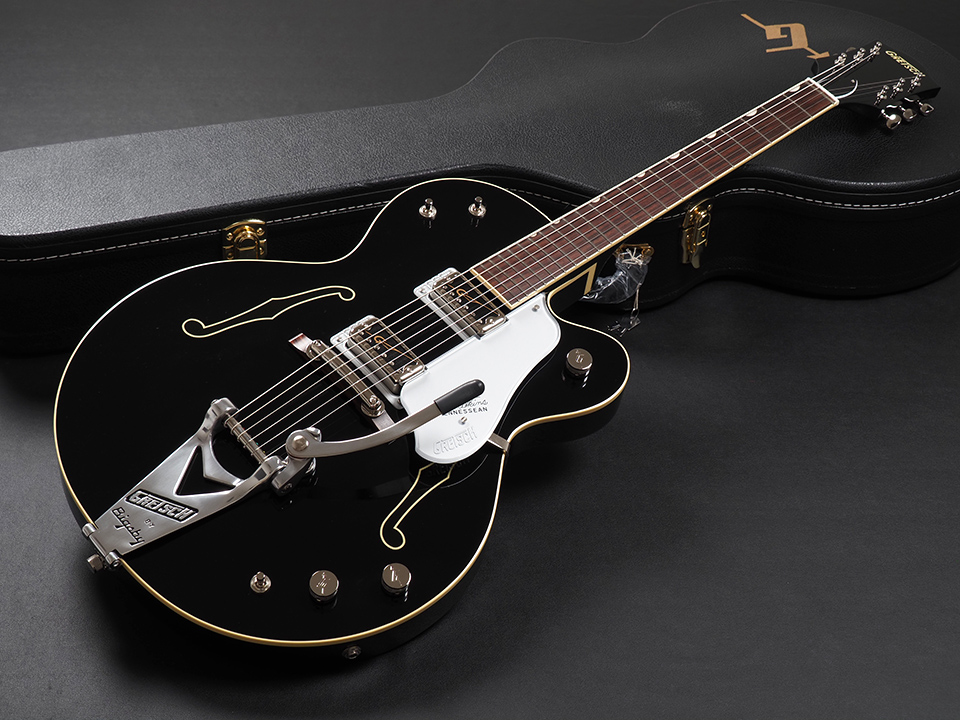 Gretschの名機“Tennessean”の1962年スタイルを現代に甦らせた、特別限定生産モデル「G6119T-62 Vintage Select Limited Edition ‘62 Tennessean Hollow Body with Bigsby」が入荷しました。ブラックフィニッシュによるクールで洗練されたルックスと、伝統のGretschトーンが融合した、グレッチファン必見の1本です。