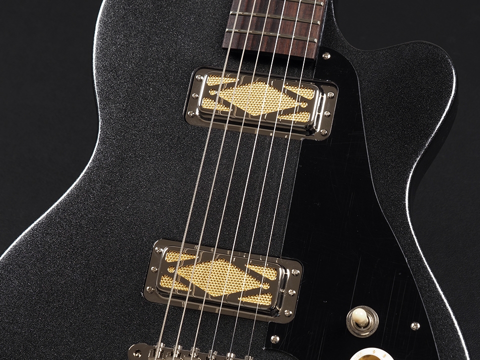 フェライトバー・マグネットをコイル側面に配置し、通常のシングルコイルより幅広い磁界を形成してハムバッカー的なアタックとエアー感を作り出しています。ニッケルメッキが施されたブラス製カバー、アルミニウム製ベースプレート、ゴールドフォイル・トッププレートはノイズシールド効果を発揮するだけではなく、トーンキャラクターを形成する上でも重要なファクターとなっています。