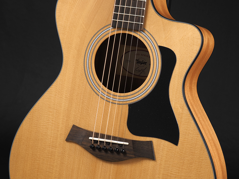 テイラーのラインナップ中でコストパフォーマンスの高いカッタウェイ・デザインのモデルのひとつです。15万円以内でエレアコをお探しの方には、是非オススメしたい一本です。
