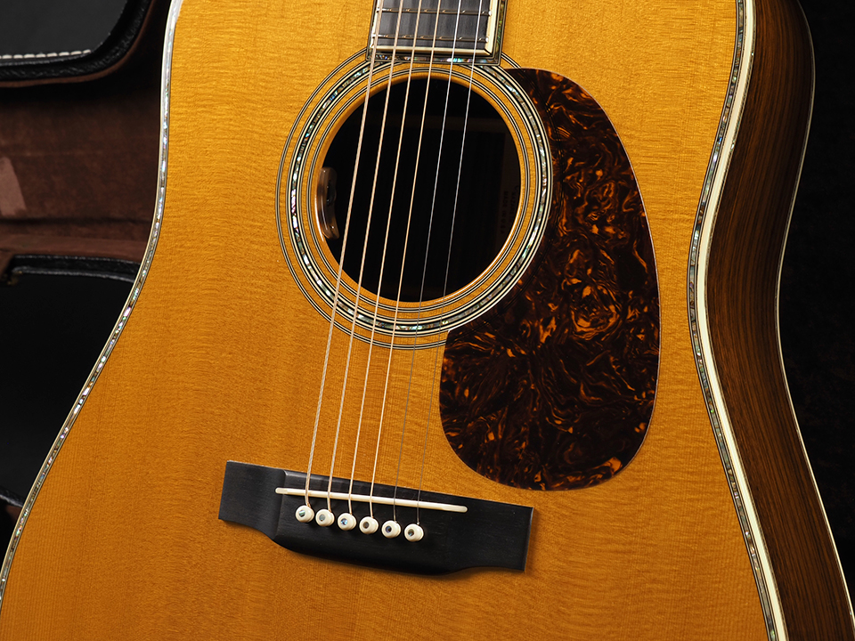 選び抜かれたスプルース材のトップに、重厚かつ美しい木目を持つイーストインディアン・ローズウッドのサイド&バックを採用。ネックには厳選されたマホガニー材、指板とブリッジには上質なエボニーを使用し、マーティンならではの重厚で伸びやかなトーンと、豊かな倍音が広がる響きを実現しています。