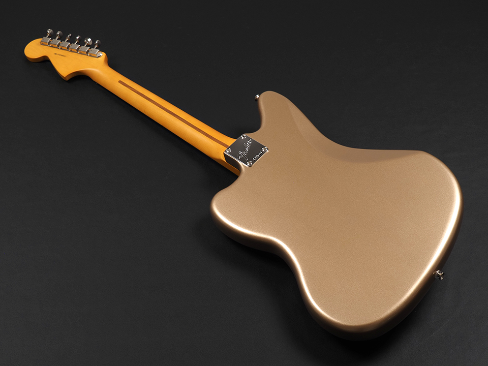 ルックス面でも、ヴィンテージ・ジャズマスターを想起させる上品なFaded Firemist Goldフィニッシュと3プライのミントグリーン・ピックガードが絶妙なコントラストを描き、ステージでも圧倒的な存在感を放ちます。