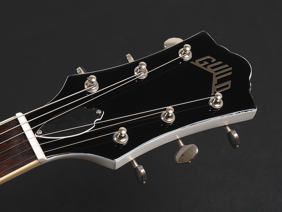チューナーはヴィンテージ感溢れるGuild Vintage 18 Open Gearタイプを採用し、ブリッジはGuild Tune-O-MaticとStop Barテールピースによる安定したチューニング性能を実現。