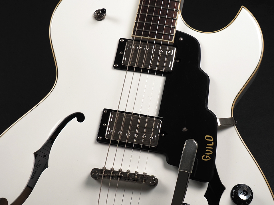 ピックアップにはGuildオリジナルのHB-2 Alnico IIハムバッカーを搭載。太くてウォームなトーンから、エッジの効いたドライブサウンドまで幅広く対応します。さらに、プッシュ/プル・トーンノブによるコイルスプリット機能により、シングルコイルらしいシャープなサウンドも選択可能。1本で多彩な表現力を備えています。