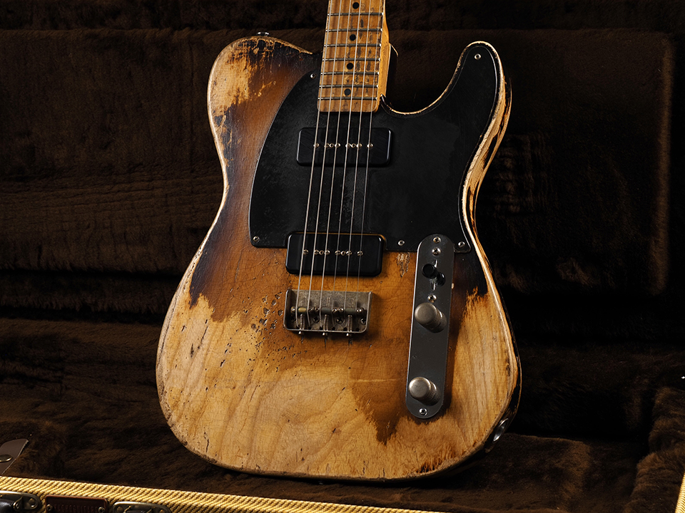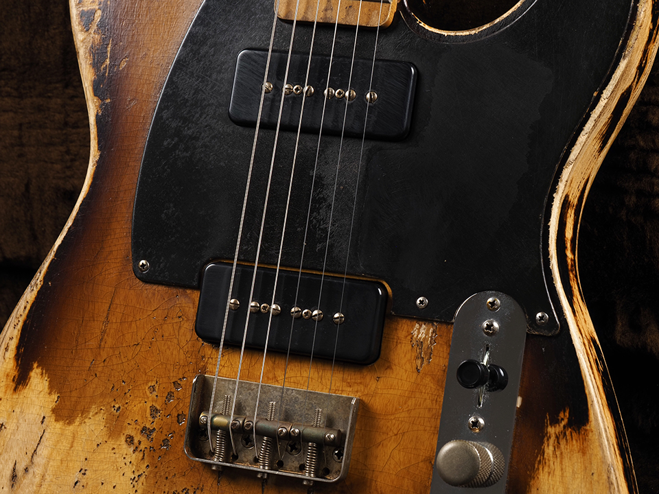 圧巻のSuper heavily aged SUNBURSTフィニッシュは、本当にこのギターが半世紀以上の年月を経てきたかのような圧倒的な仕上がり。ボディ、ネック全域においてのエッジの立て方、R部分の処理の仕方など、一部の隙も無く完璧にTelecasterのディティールを再現しています。