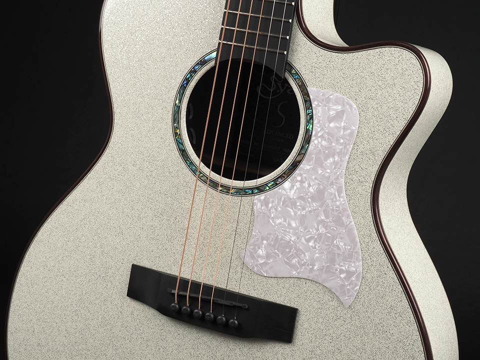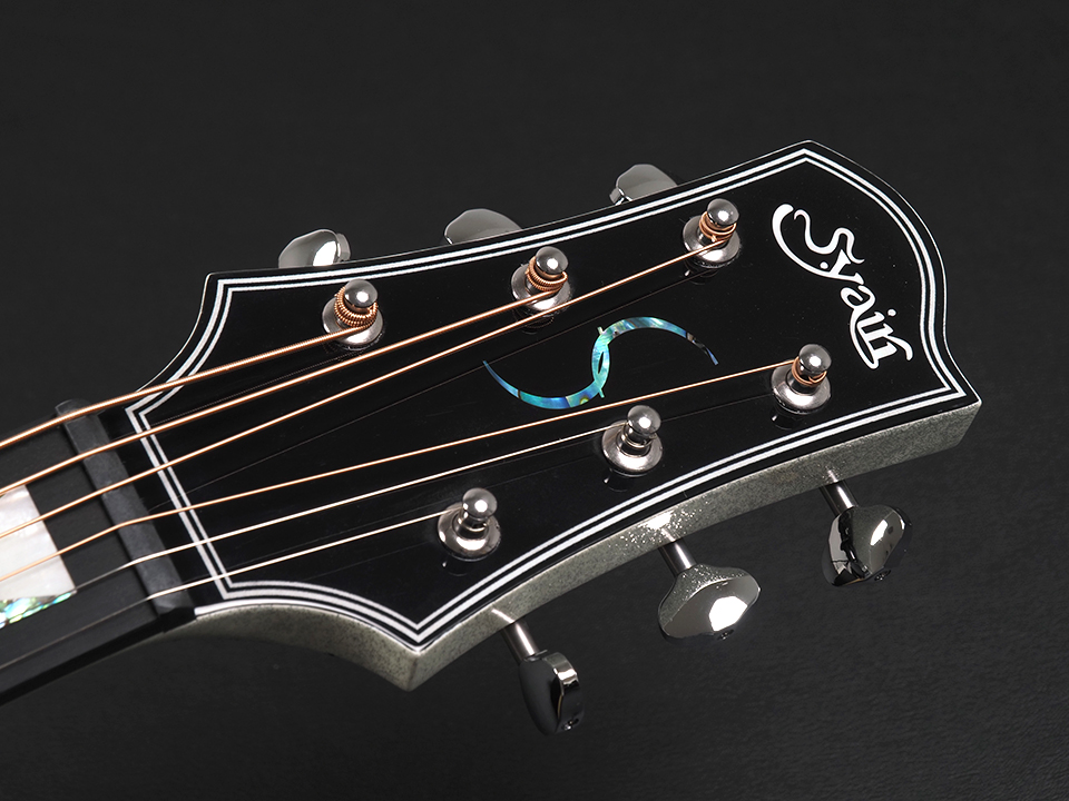 アバロン装飾のサウンドホールバインディングやポジションマークなど、細部の仕上げにもこだわった本モデルは、実用性とデザイン性を高次元で両立した1本。