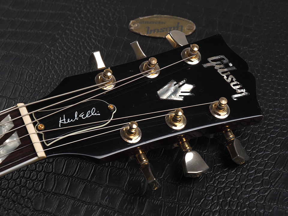 ルックス面でも、スプリット・パラレログラムインレイやゴールドハードウェア、そして深みのあるWine Redフィニッシュが相まって、上品でクラシカルな佇まいに仕上がっています。ロッドカバーにはHerb Ellisのサインが入り、シグネイチャーモデルならではの特別感も魅力です。