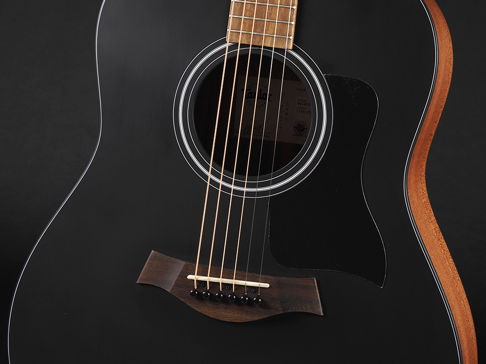 数量限定にて登場した「117e LTD Blacktop」が入荷しました。100シリーズとしては世界初となるブラックトップ仕様を採用した特別モデルで、国内限定販売という希少性の高さも魅力の1本です。さらに初期出荷分に限り、ピック入り缶ケースとTaylorストラップが付属する特典付きとなっております。