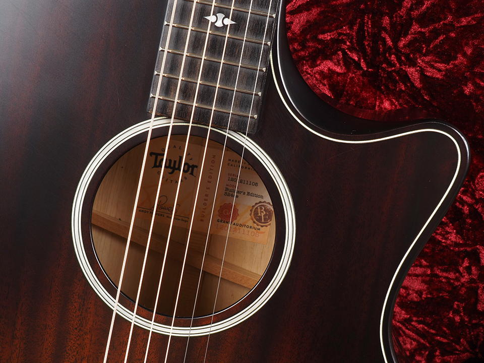 Builder’s Editionは、V-Classブレーシングの登場とともに生まれた、テイラーの次世代コンセプトモデルです。サウンドだけでなく、手触りや弾き心地といった演奏体験そのものを追求し、プレイヤーにとっての快適性を極限まで高めたシリーズです。