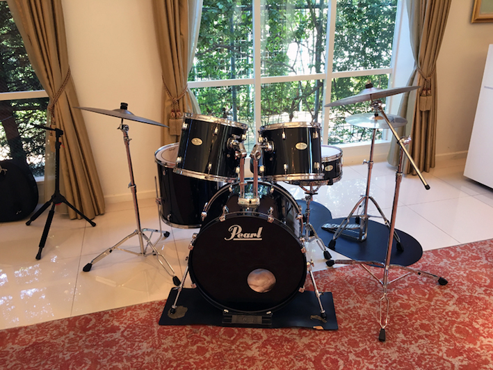 ドラム本体、シンバル、スタンド、キックペダル、スローン、マットがセットとなっております。